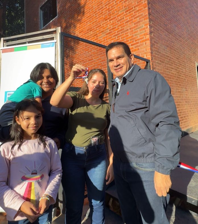 El ministro de Urbanismo, Vivienda y Hábitat, Juan Carlos Baruja, encabezó este lunes la entrega de dos viviendas sostenibles en el barrio Chacarita Alta de Asunción. Las casas forman parte del Proyecto de Mejoramiento Integral financiado con recursos del Banco Interamericano de Desarrollo (BID), que contempla la construcción de 60 viviendas y obras de infraestructura en una zona históricamente vulnerable.
