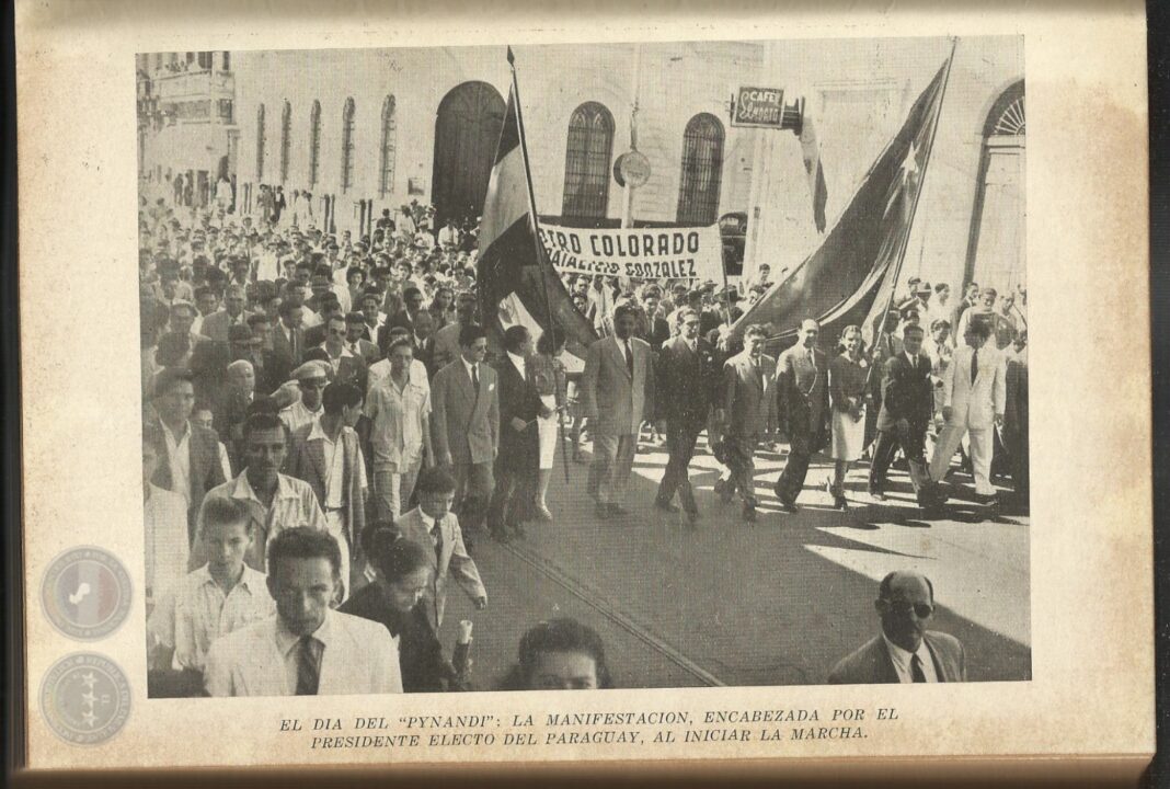 «En efecto, toda la política de J. Natalicio González fluye con lógica férrea de su visión fundamental del «Arquetipo» paraguayo: su lucha contra los seudo-valores «coloniales» y contra la «Barbarie extranjerizante»; contra el Liberalismo y contra la Constitución liberal-individualista de 1870; contra el fascismo febrerista y el totalitarismo de la Constitución de 1940; el programa del «Estado servidor del hombre libre» y el gran símbolo del «Pynandi», que es, en su esencia, el Arquetipo resucitado del «agricultor-soldado», germen de la Nación paraguaya».