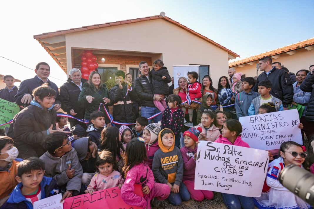 Santiago Peña y el ministro del MUVH, Juan Carlos Baruja, inauguraron 142 viviendas sociales en Limpio, Luque y San Antonio, beneficiando a familias de comisiones vecinales a través del programa Che Róga Porã 2.0.