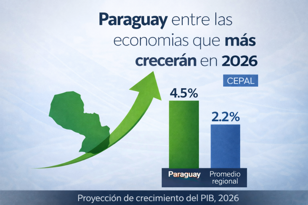 La Comisión Económica para América Latina y el Caribe estima que la economía paraguaya crecerá 4,5 % en 2026, ubicándose por encima del promedio regional y consolidándose como uno de los países con mejor desempeño macroeconómico de Sudamérica.
